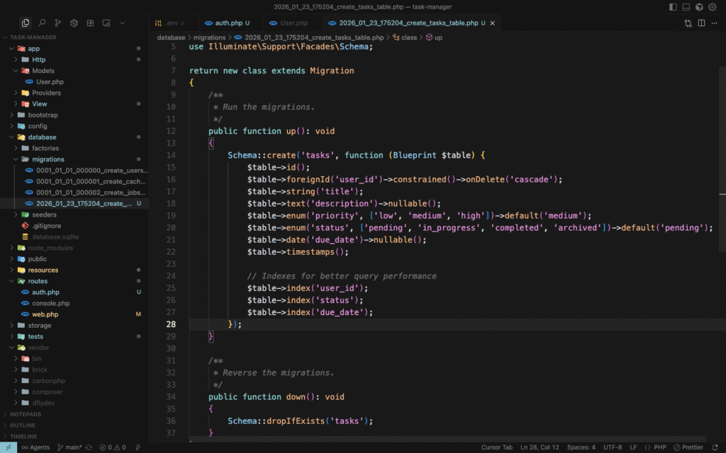 Welcome back to our Laravel 12 Task Manager series! In Part 1, we set up our development environment and created our first Laravel project. Now it’s time to build the foundation of our application with user authentication and a proper database structure.