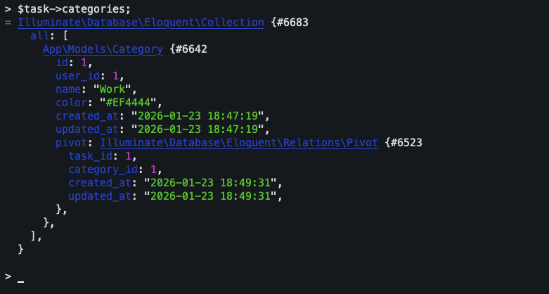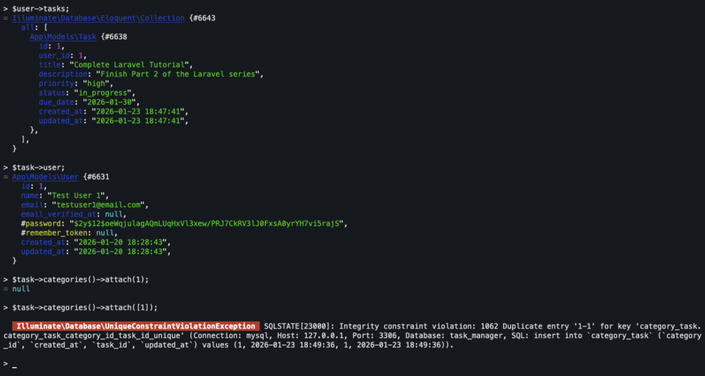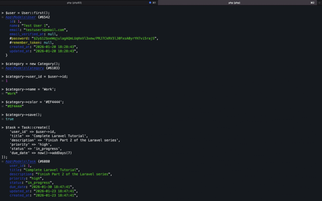 • Use Tinker to create 5 tasks with different priorities and statuses